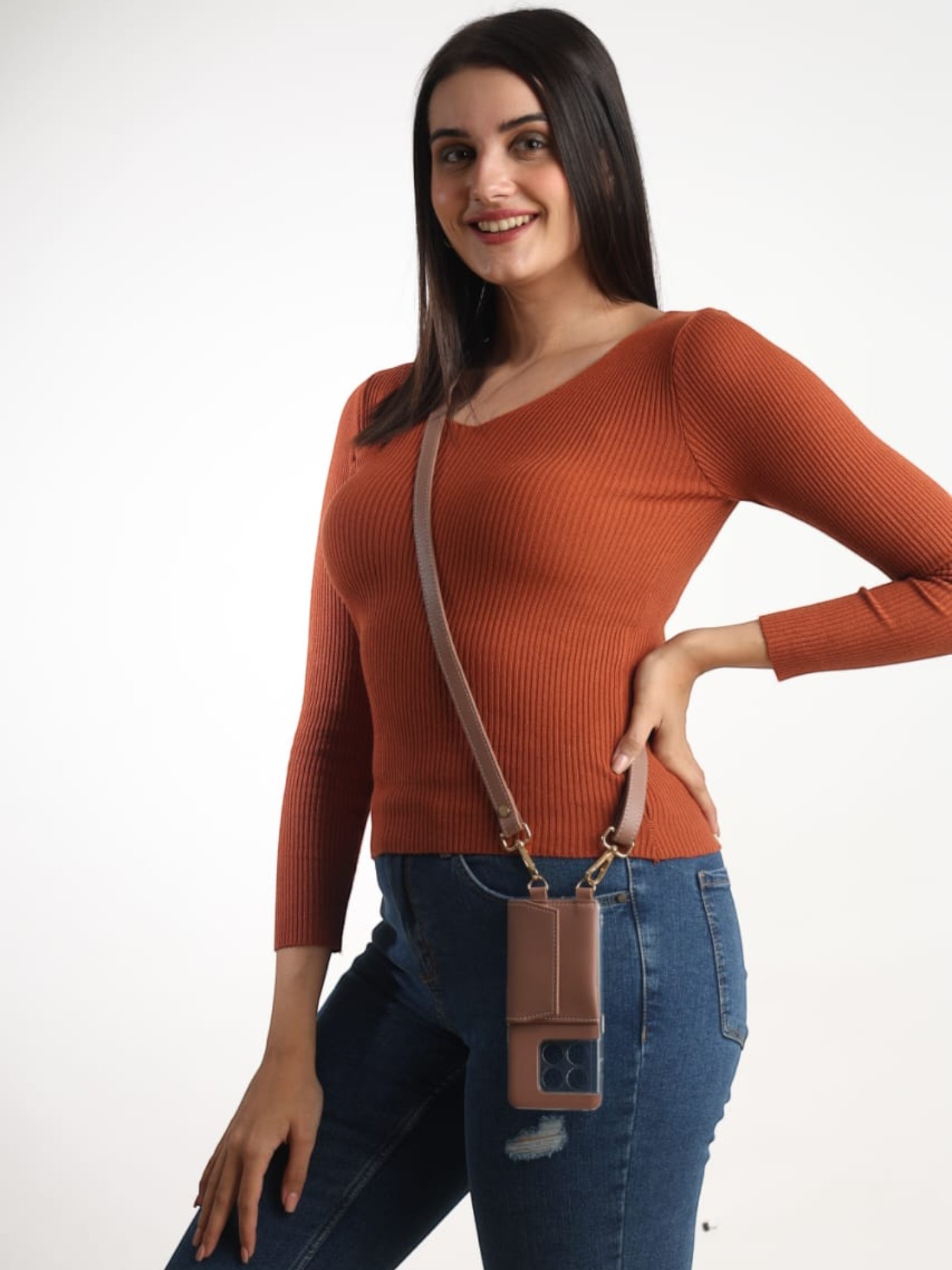 Unleash a new era in phone accessories with our Personalized MOLTEN CHOCOLATE  SLINGSHOT SLIM BELT WITH PHONE CASE AND INITIAL (optional). This transparent customized phone case is more than just a phone accessory; it’s a statement of style and practicality. You can Elevate your phone’s look with a Swarovski-studded initial, making it uniquely yours.